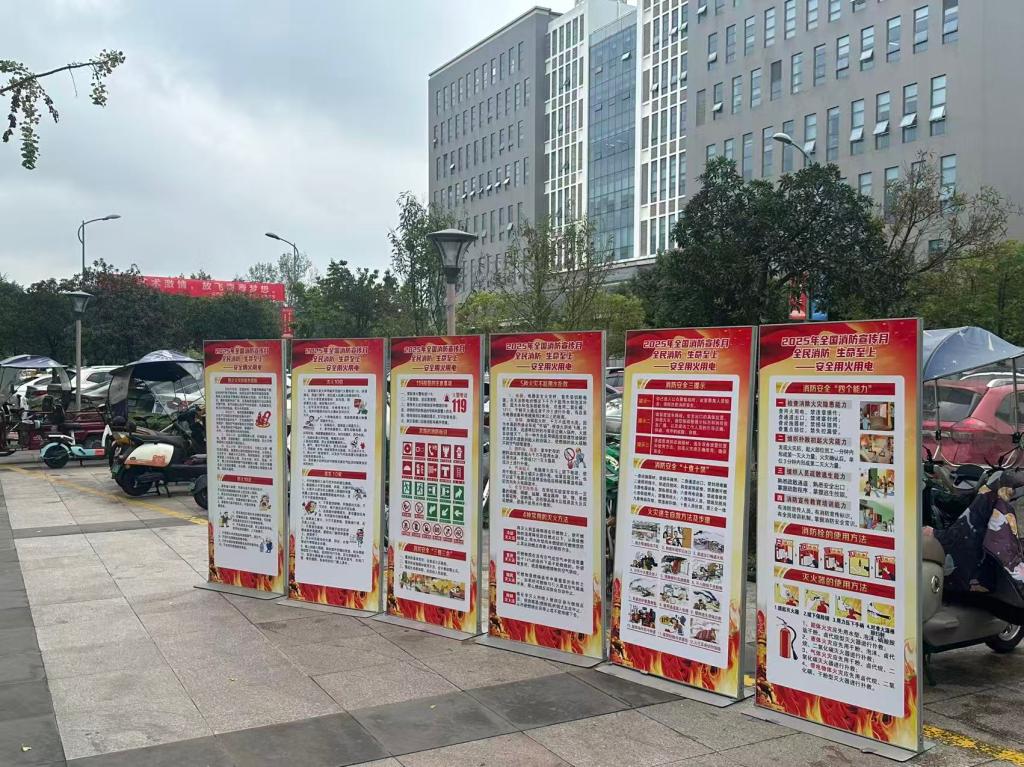 宣传月期间,学校积极整合线上线下资源,构建起立体化的消防安全宣传网络。线上依托学校官方微信公众号、校园广播等平台,持续推送涵盖实验室、学生公寓、电动自行车等重点区域的消防安全知识,普及安全用火用电用气常识、初起火灾扑救方法及火场逃生自救技能。线下在教学楼、宿舍区、实验室等人员密集场所悬挂宣传横幅、布设固定展板、发放消防安全手册,并利用电子显示屏循环播放火灾警示案例,营造出“人人关注消防、人人学习消防”的浓厚氛围,切实增强师生的消防安全意识。