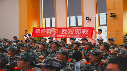同时现场设置宣传展板辅助科普,新生认真聆听、积极互动,纷纷表示将自觉抵制邪教、传播科学。