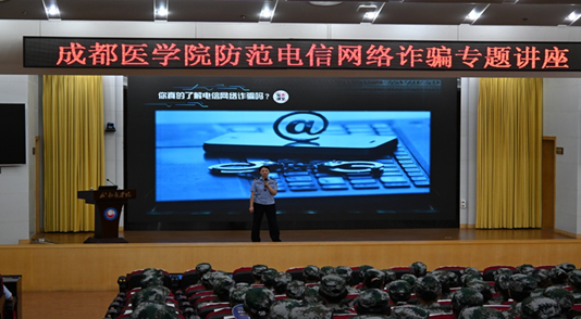 为进一步加强师生安全防范意识,增强识诈反诈能力,按照部门工作计划安排,9月16日,学校保卫处联合新都公安反诈中心,特邀反诈民警张警官“现身说法”为2025级新生呈现一堂生动的安全教育课。