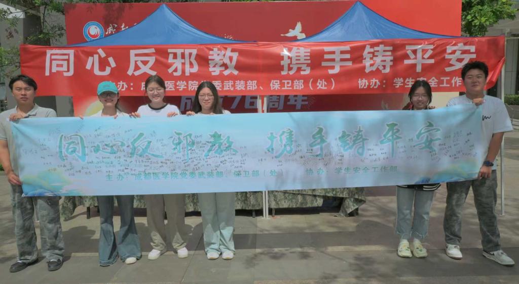 为增强在校大学生对邪教的识别与抵御能力,营造安全、文明的校园环境,9月29日中午,由学校党委武装部、保卫部(处)主办,学生安全工作部协办的“同心反邪教,携手筑平安”反邪教宣传主题活动在学校食堂门口举行。活动邀请了驻校民警韦强、学校国家安全教育基地警官王琪林现场宣讲,通过趣味问答、现场宣讲、签名承诺相结合的方式,吸引了众多师生参与,在寓教于乐中深化了反邪教教育成效。