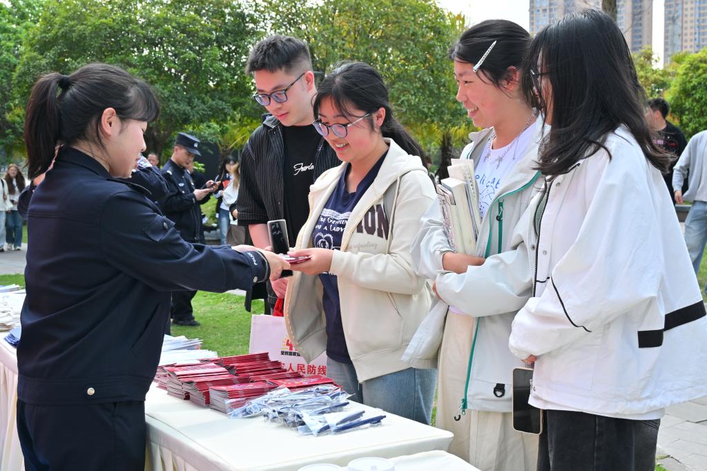 4月15日上午,线下主题宣传活动在校国家安全教育基地拉开帷幕。现场设有知识有奖答题、政策咨询、手册发放等区域,民警与学校工作人员化身“安全宣讲员”,生动解读政治安全、网络安全、社会安全等领域法律法规与安全常识。