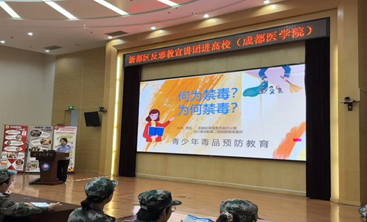 为进一步加强校园禁毒宣传,筑牢师生识毒拒毒防毒意识,按照部门工作计划安排9月16日,学校党委武装部、保卫部(处)邀请新都区禁毒民警为2025级新生开展禁毒宣传警示教育专题讲座。