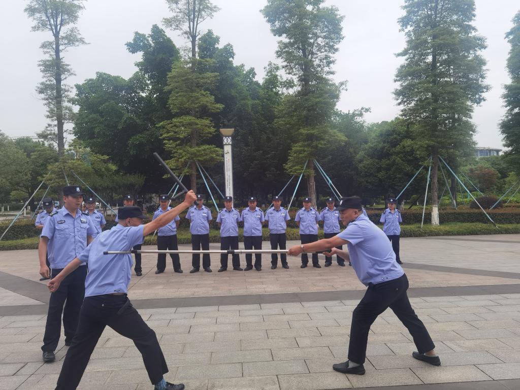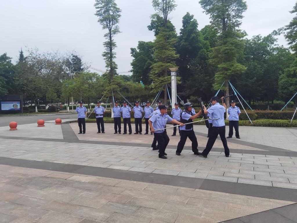 为进一步提升安保队伍应急处突能力水平,筑牢校园反恐防暴安全防线,近期,学校邀请新都公安分局防暴大队警官,来校指导我校反恐防暴器械使用和应急演练。