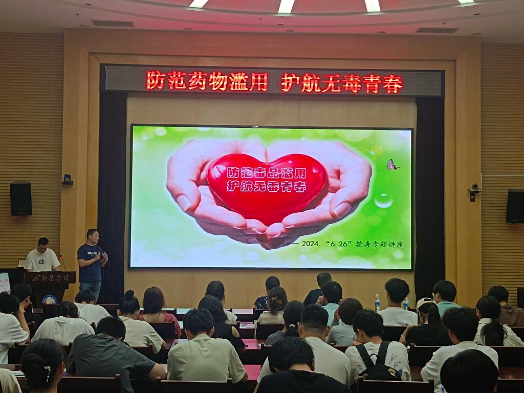 为进一步加强毒品预防宣传教育,提高广大师生识毒、防毒、拒毒意识,在第37个国家禁毒日来临之际,6月20日下午,党委武装部、保卫部(处)诚邀新都街道禁毒工作站站长蒲江波、新都区妇女儿童医院吴兴珍护士长在新都校区多功能厅作禁毒专题报告,相关职能部门、无课师生200余人聆听了讲座。